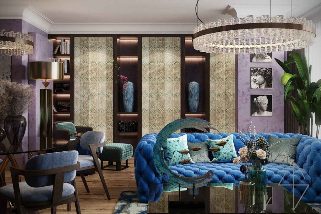 نمونه ای از یک طراحی آپارتمان مدرن که محیط آن چند منظوره و چند کاربردی و مناسب برای زندگی خانوادگی که محیطی پر از آرامش و آسایش را در چشم ساکنین به تصویر می کشد. حتی در این آپارتمان فضاهای شیک دیگری هم برای فعالیت های اجتماعی مختلف در نظر گرفته شده است. این آپارتمان که در منطقه نخل جمیرا واقع شده و تمامی بخش ها و رنگ های هنری و نوع ویویی که به آن بخشیده الهام گرفته از دریای خلیج فارس و ماورای آن است. ویژگی شاخص دیگر وجود دیوارهایی از سنگ مرمر به ارتفاع کامل سقف و نورپردازی های مخفی و آثار هنی است. دسترسی به تمامی بخش ها ساده است و اصلا احساس نمی کنید که در یک آپارتمان با فضای نه چندان بزرگ زندگی می کنید.
